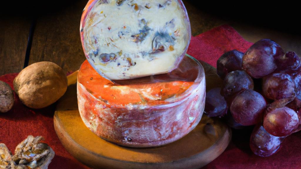 - Possesses a crumbly texture and rich, deep purple hue from the wine-soaked aging process